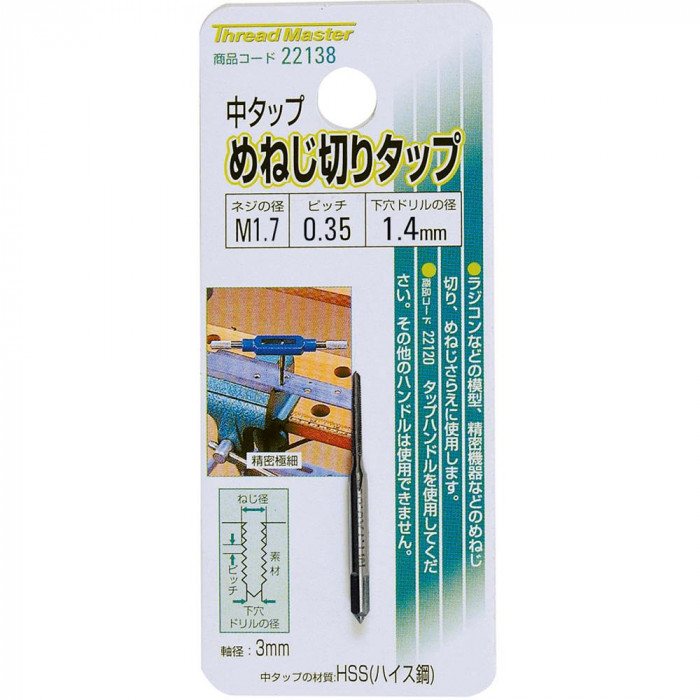 ラジコンなどの模型、精密機器などのめねじ切り、めねじさらえ用。