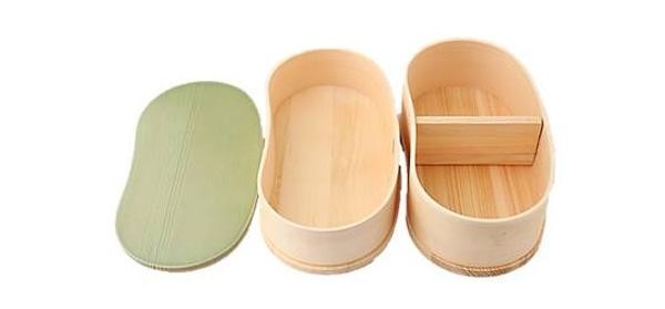 | 職人の手づくりにこだわった、昔なつかしい曲げわっぱ弁当箱です。ご飯を入れると木が余分な水分を吸収し、風味を損なわずにいただけるという昔の人の知恵が生きています。 |