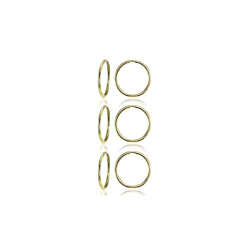 -. Title : 14K Gold Tiny Small Endless 10mm Thin Round Lightweight Unisex Hoop Earrings, Set of 3 Pairs