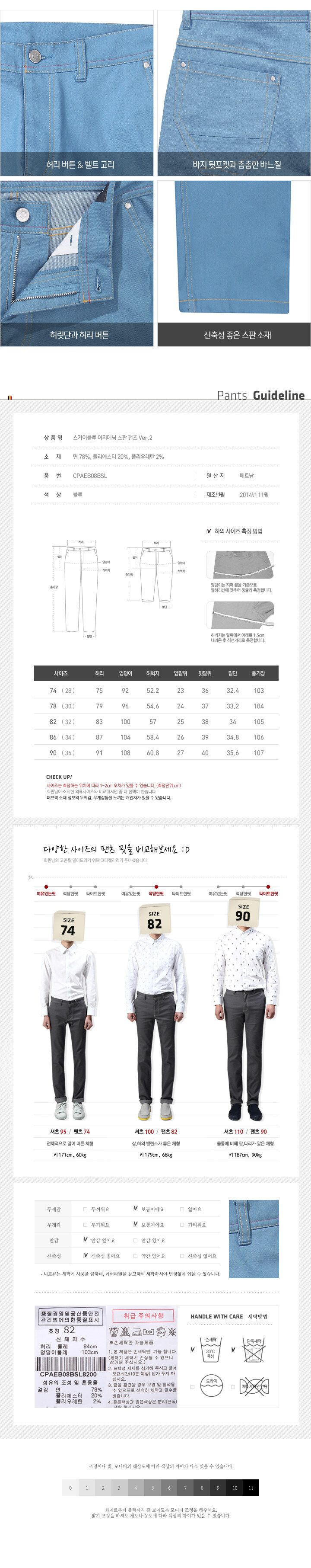 サイズ(cm):74,78,82,86,90サイズ ウエスト ヒップ もも 股上 裾幅 総丈 74 75 92 51.2 23/36 32.4 103 78 79 96 53.6 24/37 33.2 104 82 83 100 56 25/38 34 105 86 87 104 58.4 26/39 34.8 106 90 91 108 60.8 27/40 35.6 107