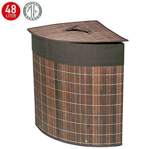 -. Title : Tatkraft Athena Bamboo Corner Laundry Basket with Cotton Bag 48L 13.5X13.5X19.5 inches