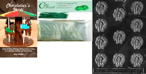 Cybrtrayd Wreath with Candles Chocolate Mold with Chocolatier's Bundle of 25 Cello Bags, 25 Green Twist Ties and Chocolatier's Guide
