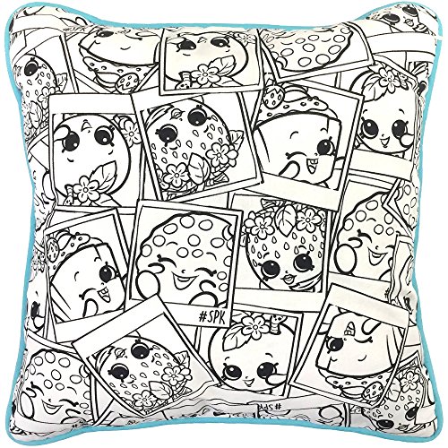 -. Feature : Shopkins Selfies Color Me Pillow / Includes 5 permanent markers / Back is solid blue / Dimensions: 13" x 13"