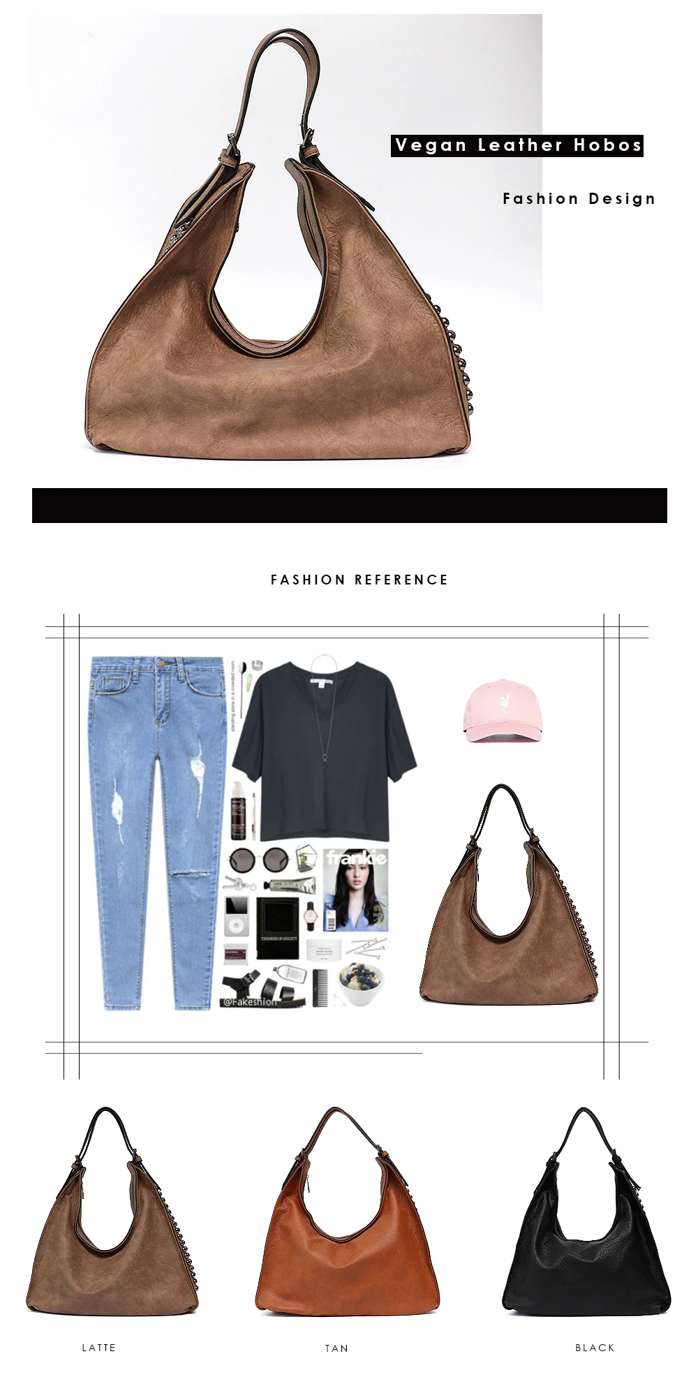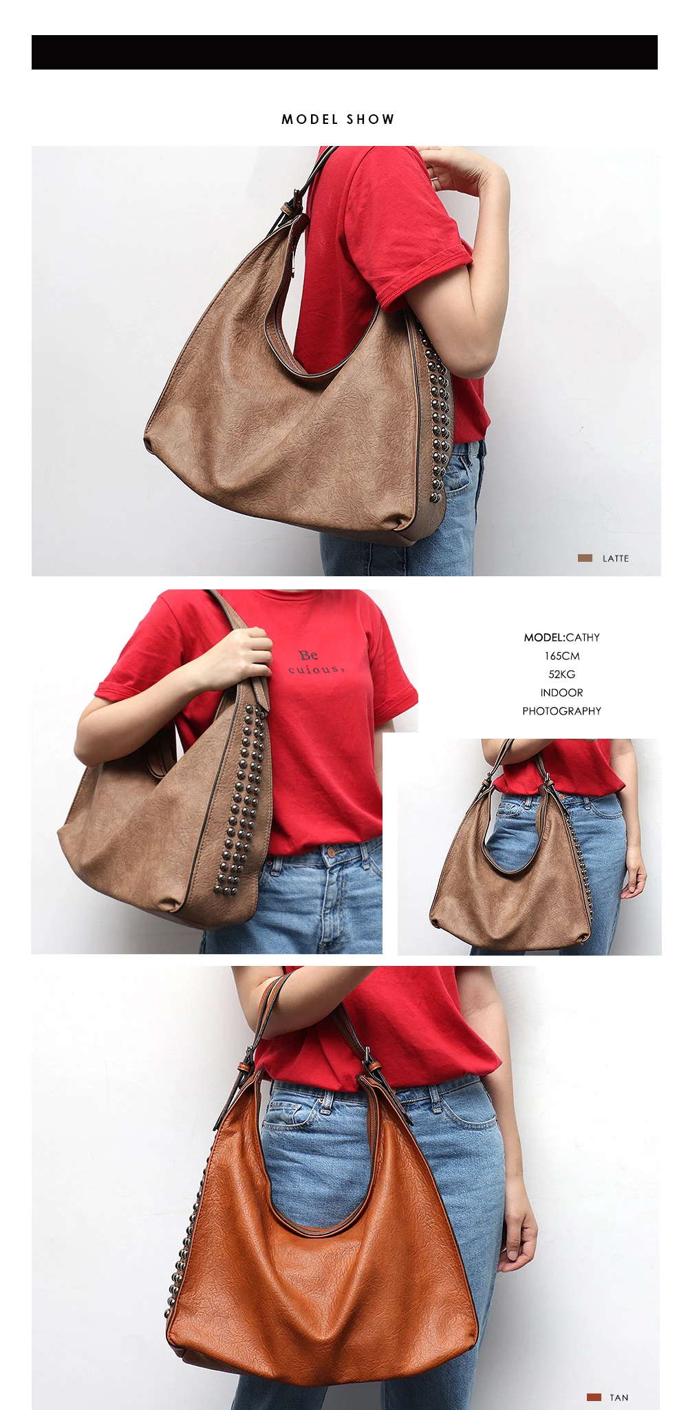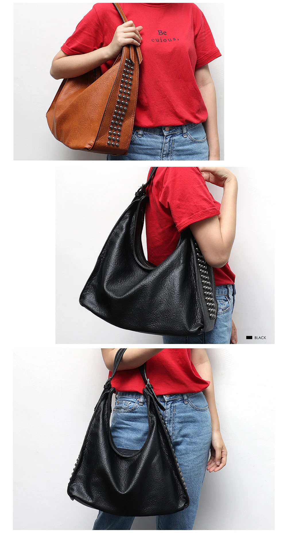 Product Name:MONFERE Fashion Rivets New Hobo