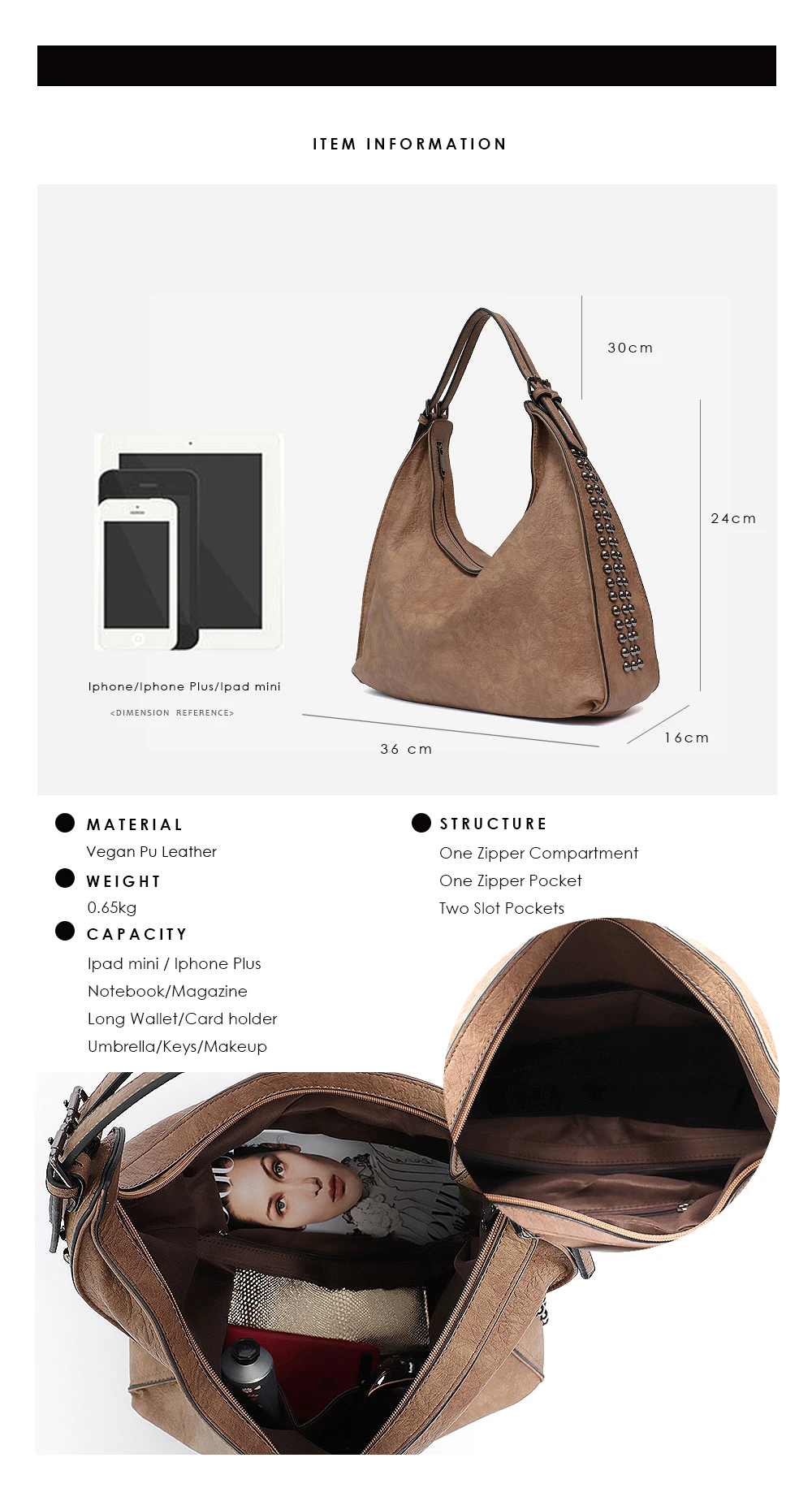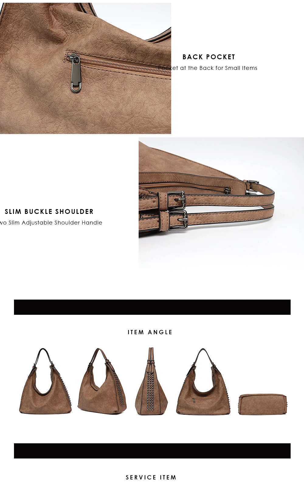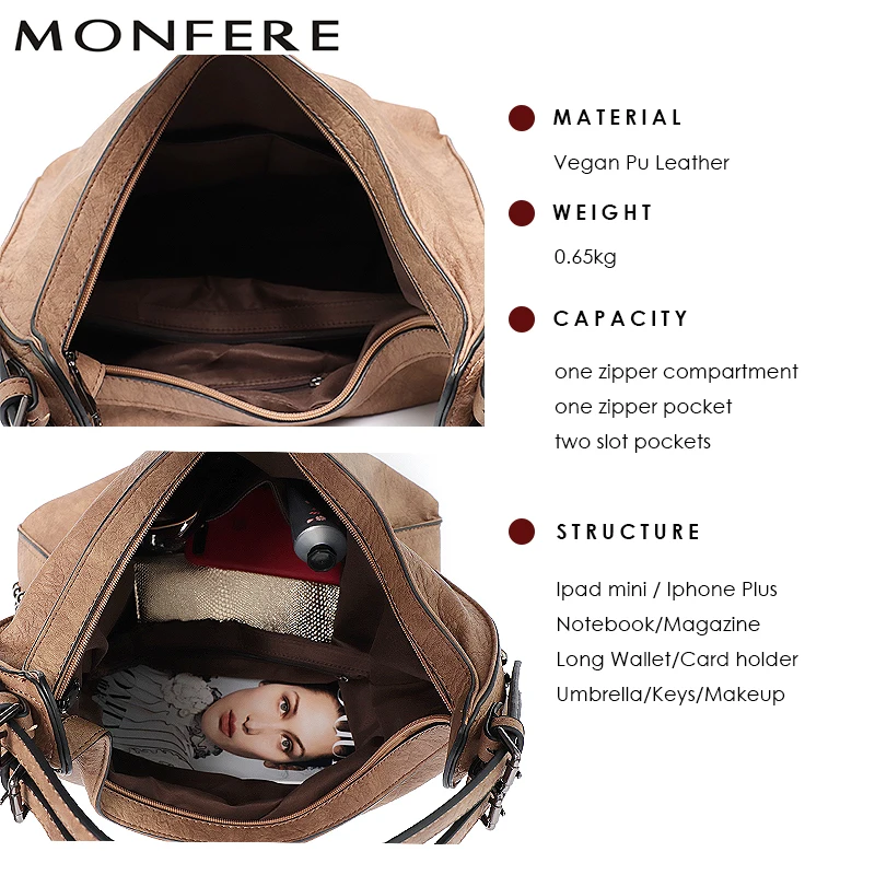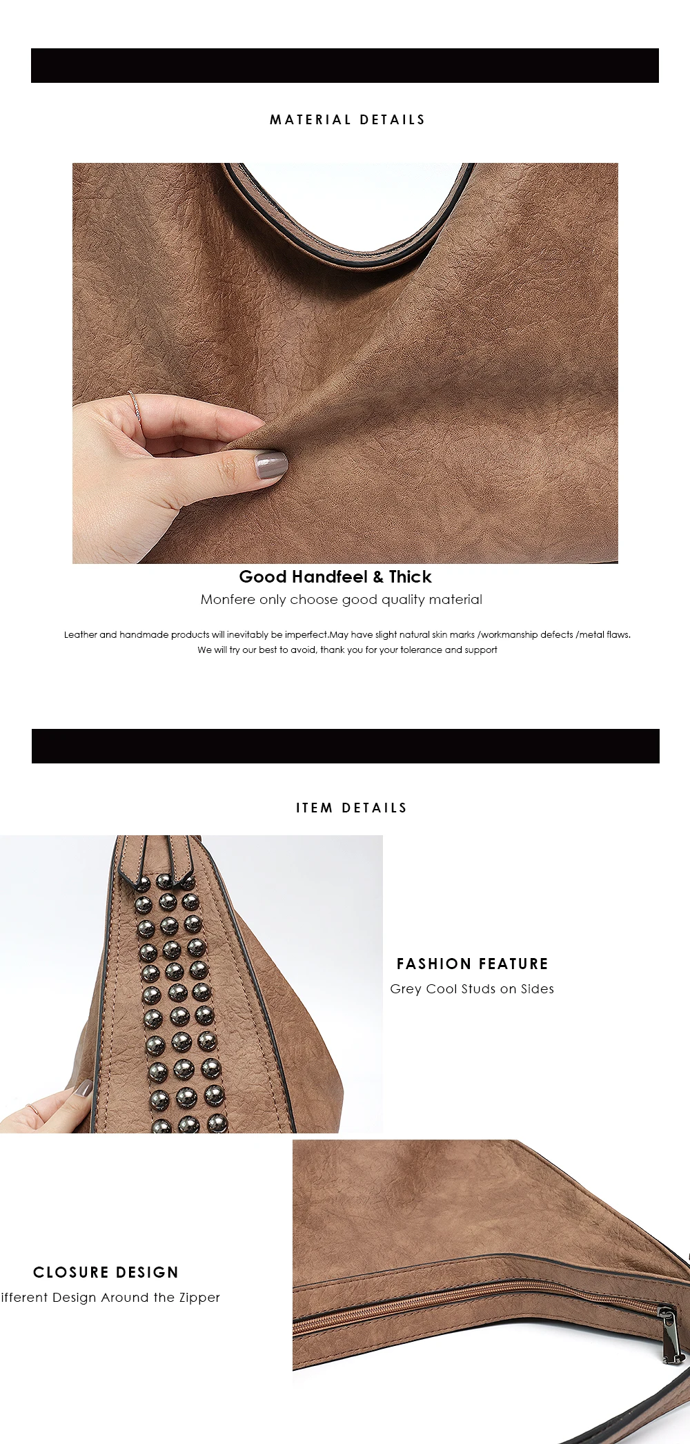 Product Name:MONFERE Fashion Rivets New Hobo