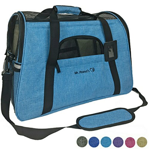 Airline Approved Soft Sided Pet Carrier by Mr. Peanut's, Two-Tone Luxury Travel Tote with Fleece Bedding, New Design, Under Seat Compatibility, Perfect for Cats and Small Dogs