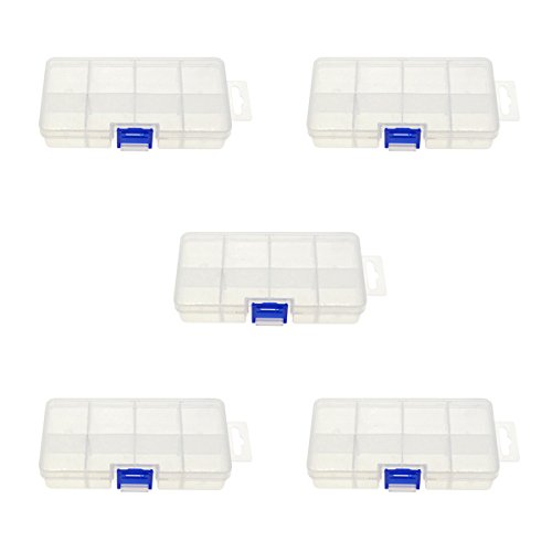 Saim Adjustable Clear Plastic 8-Grid Jewelry Organizer Divider Storage Box Small Pack of 5