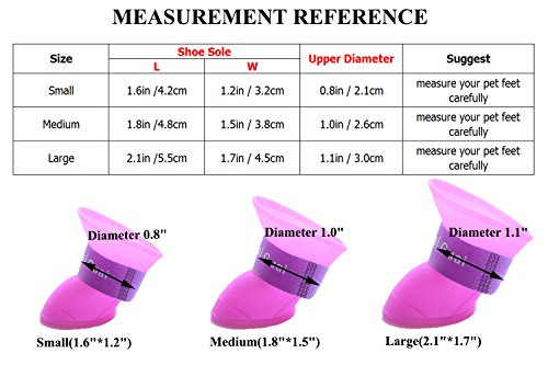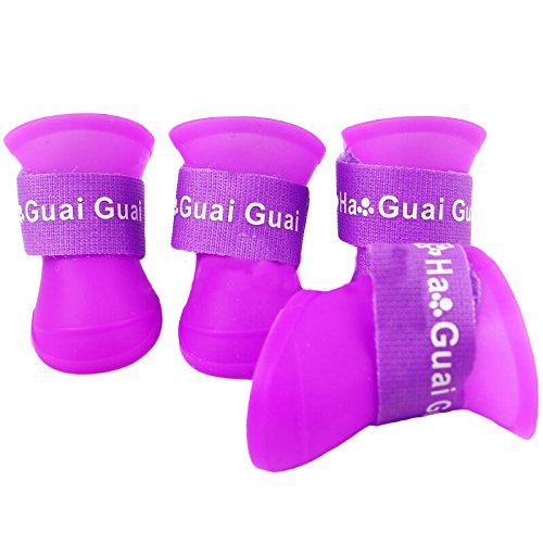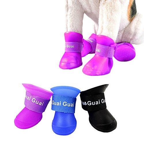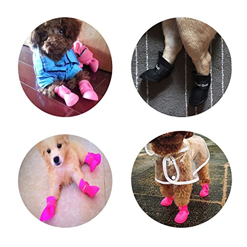 -. Feature : Use PVC environmental protection material, non-toxic, flexible. Protects your pet's feet from being wet when they walking on the wooden floors, deck and beach. / Easy to wear, convenient, soft and comfortable, Rainproof, waterproof, anti-skid, prevents your love pet's feet from rain, water and mud. / Ensure the claws clean indoor, avoid the glass shards and other injuries, easy to carry and storage / Anti-skip bump design at the bottom of the pet shoes,very light 20-30g each of them,move freely. / BUY THIS PRODUCT, YOUR 100% SATISFACTION IS GUARANTEED