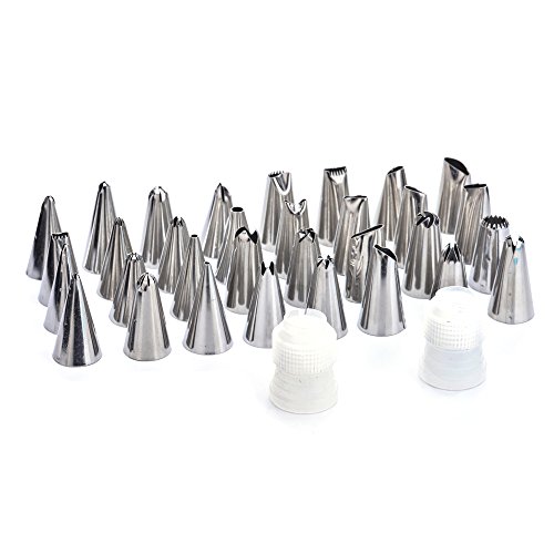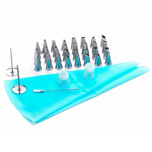 - EVERYTHING YOU NEED AND NOTHING YOU DON'T: With 32 premium tips for a variety of designs, 2 couplers, 2 reusable silicone pastry bag, 2 flower nails, and 1 cleaning brush, you'll have everything you need to start decorating amazing cakes, cupcakes, and cookies like a pro.