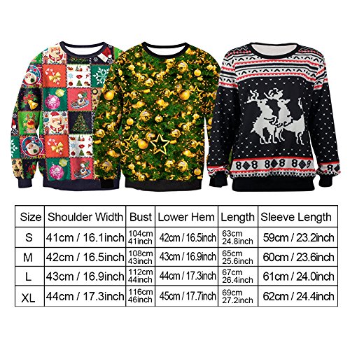 Specification: Item Type: Christmas Sweatshirt Materials: polyester spandex Color: multicolored Optional sizes: S, M, L, XL Package weight:345g Please allow 1-3cm error due to manual measurement. Thank you for your understanding.