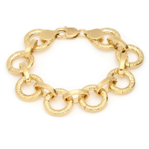 -. Title : 14k Yellow-Gold-Plated-Bronze Greek Key Circle Link Bracelet, 7.50 Inch by Roberto Martinez