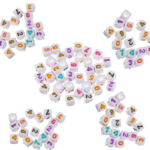 450 Mixed Color on White Acrylic Number 0-9 Cube Spacer Beads 7mm Approx 1/4 Inch