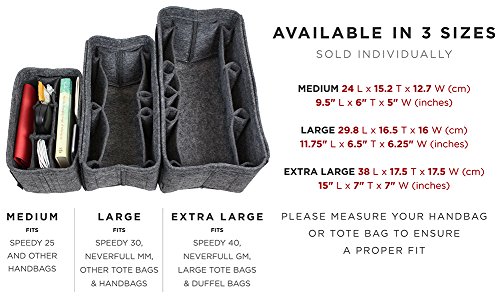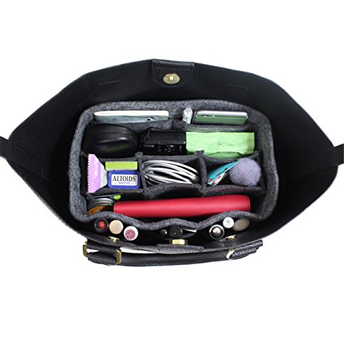 Product Description LIGHTWEIGHT, STYLISH DURABLE: Made of high-quality, 100% polyester felt. This soft and stylish felt will add volume to your handbag, helping it keep its shape whilst protecting your delicate essentials like glasses, smartphone, and camera. Not only will this keep your purse organized, it also looks great atop your desk or dresser, keeping all of your accessories neat and tidy in one place. Accessories and purse not included. 0
