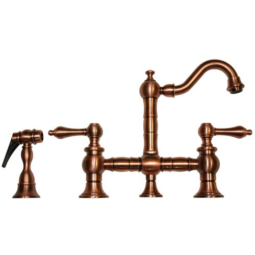 Whitehaus WHKBTLV3-9206-ACO Vintage Iii 6 3/16-Inch Bar Bridge Faucet with Short Swivel Spout, Lever Handles, and Side Spray, Antique Copper