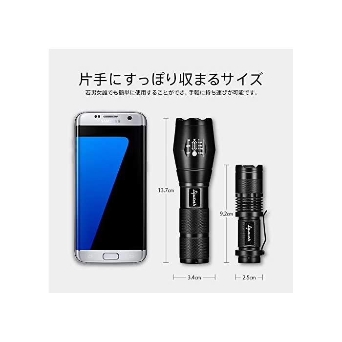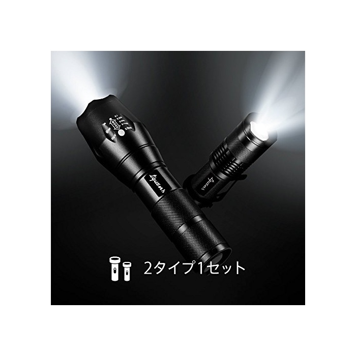 원본상품명: 【Tquens】LED 中電、 フラッシュライト [ 大小2個セット ] [ 超高輝度 ハンディライト 電池付き ] [ アウトドア 防災グッズ キャンプ ] L200 LED Flashligh
