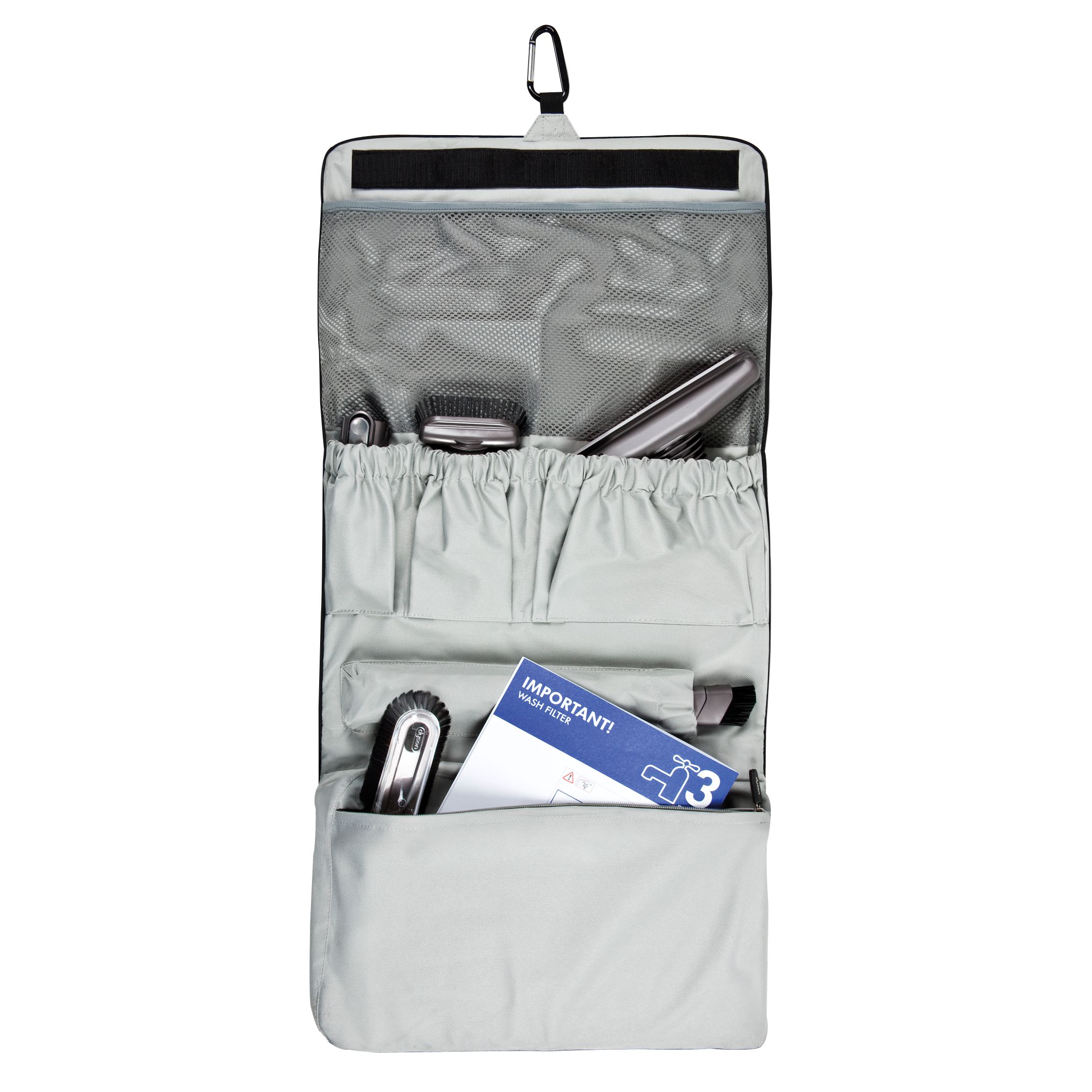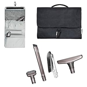 Dyson engineered cleaning tools can be stored for easy retrieval. Tough, polyester roll bag contains pockets for multiple tools and carabineer for hanging. Cleaning tools are sold separately.
