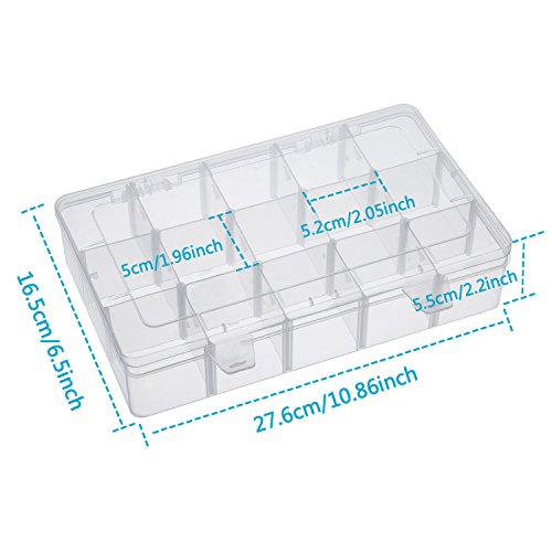 Clear storage box size: the total size (LWH) is approx. 10.86 x 6.5 x 2.2 inches, including 15 grids, each grid size is 1.96 x 2.05 inch; Note: not for any tape whose diameter is over 5 cm/ 2 inch