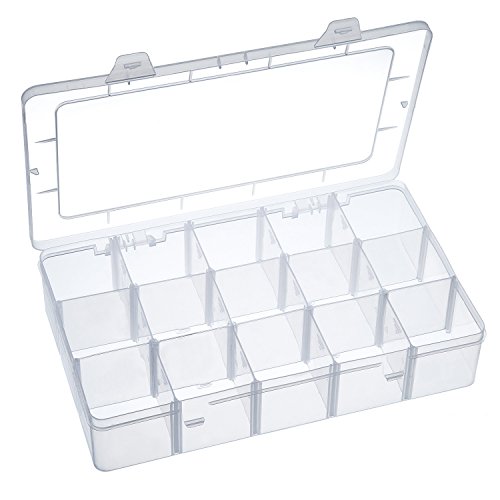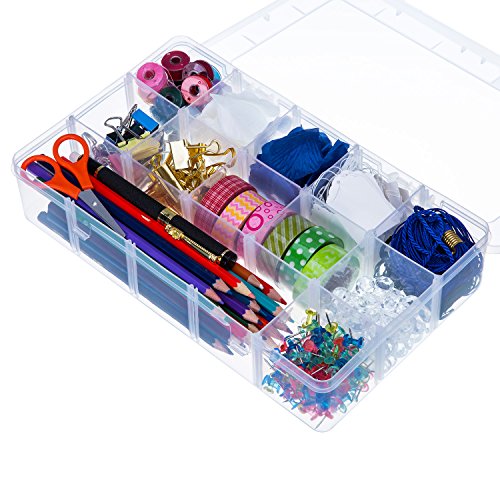 Outus Crafts Organizer Storage Box for Washi Tape, Art Supplies and Sticker, 15 Compartments, Clear