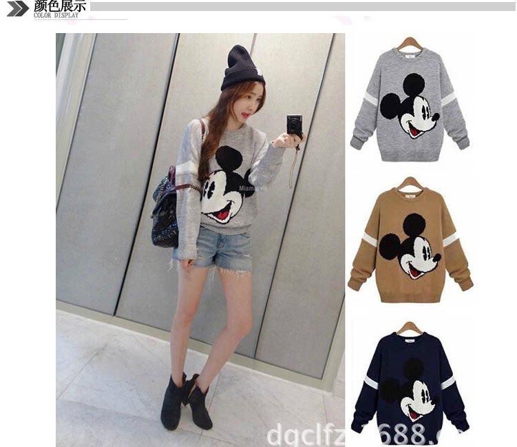 秋冬少女学院风套头毛衣加厚圆领大码宽松米奇毛衣女学生外套