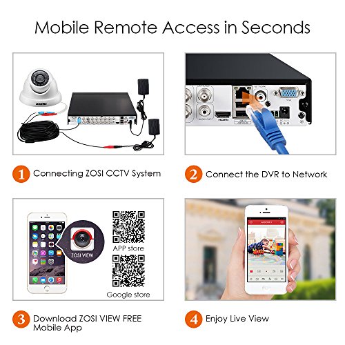 -. Feature : (1). QR code scan via mobile device using our free ZOSI View app (available on iOS/Android).Live view and playback on your smartphone via 3G/4G/WIFI. / (2). 16 Channel Hybrid Capability 4-in-1 DVR:With self-adaptive technology,it supports 4 kinds of camera models:Analog,720P/1080P AHD,720P/1080P TVI and CVI / (3). Ultra long continuous recording & easy USB backup:The DVR can be set to automatically overwrite the oldest stored footage,and you can backup the records via the USB backup / (4). Intelligent motion detection email alert with images; Motion detection recording allows you save more capacity hard drive(No hard drive included,20g/day/CH for 720P ,it can't record or playback without hard drive) / (5). All systems CE & FCC certified with qualified power supplies.Guaranteed for 2 Year & Free life time Tech Support.//// Please refer to the last product images on the left side ,it will show you how to contact us for help ! Definitely respond within 24 hours!
