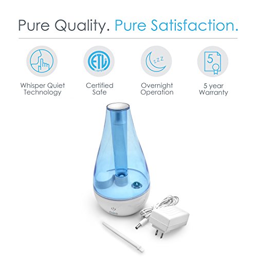 Ultrasonic Cool Mist Humidifier for Small Rooms – Portable Humidifying Unit Ideal for Travel with High & Low Mist Settings and Optional Night Light