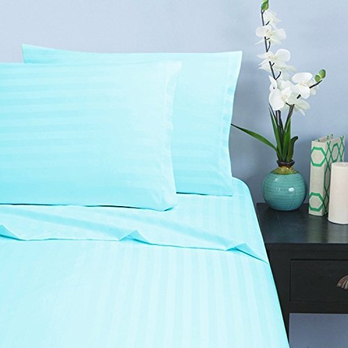 Elegant Comfort 1500 Thread Count -DAMASK STRIPES- Egyptian Quality Luxurious Silky Soft WRINKLE & FADE RESISTANT 6-Piece Sheet set, Deep Pocket Up to 16" - King Aqua