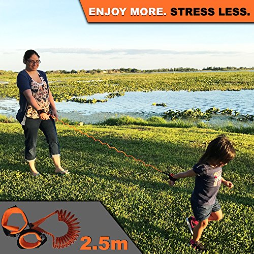 Premium quality Children Wristband Link Leash By Eco-Baby – 8.2 Ft/2.5Mt & 4.9 Ft/1.5Mt PU Cord & Stainless Steel – 360o Rotating – Eco & Skin-Friendly –...