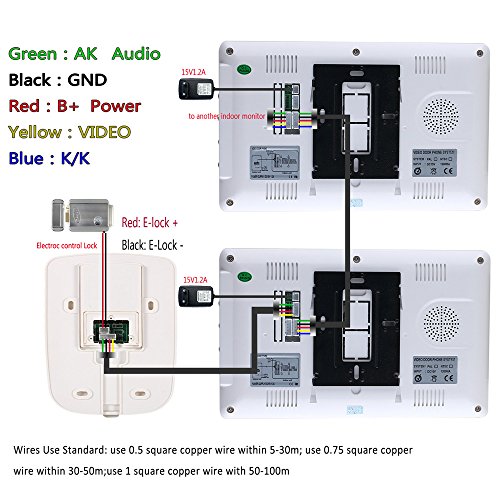 -. Feature : 7 Inch TFT video door phone intercom / 25 kinds of door bell rings / Camera: 1/4" CMOS 700TV Lines / Easy installation by yourself with adapter and cable we provide in this kit.