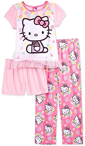 Hello Kitty makes bedtime so sweet for little girls with this darling three-piece set pajama. The perfect set includes a shirt, a pair of shorts, and a pair of fun graphic-print pants.Feature