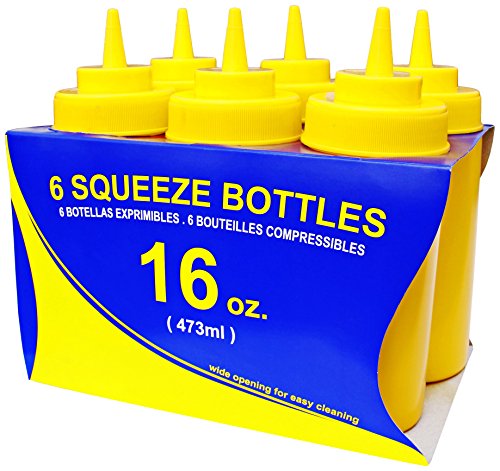 New Star Foodservice 26528 Squeeze Bottles, Plastic, Wide Mouth, 16 oz, Yellow, Pack of 6