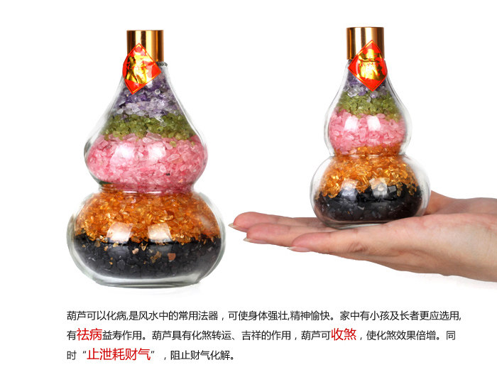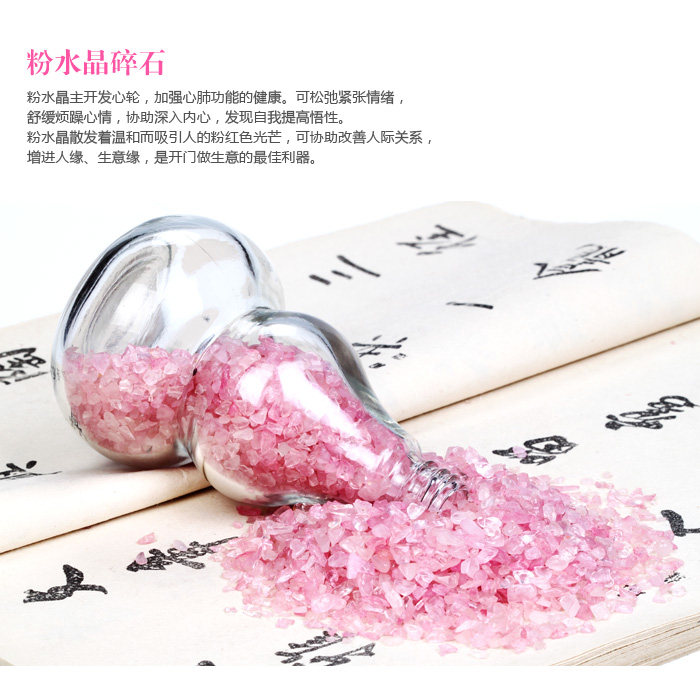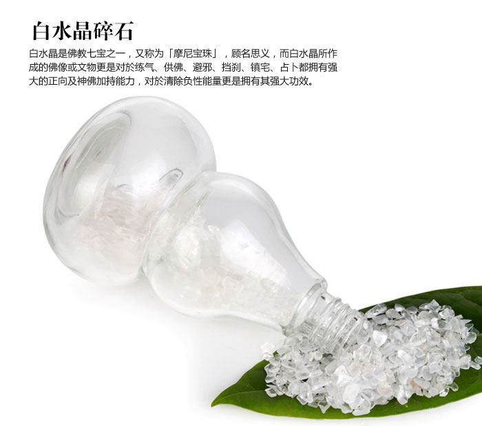 6 Crystal degaussing : Give your crystal jewelry degaussing necessary , put gravel in the container, put your beloved Crystal , on the gravel above , as long as 24 hours , your crystal is completely demagnetized Well, you can remove all previous memories , it just belongs to you.Crystal gourd bottles gravel can be dressed weight (weight of different specifications of gravel inconsistent)?