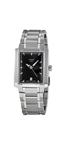 A simple yet elegant design with a clean black dial and subtle indices this ladies' TXL timepiece from the prestigious Tissot brand will make an excellent addition to any woman's collection. Its sleek and shining stainless steel build with a rectangle case and matching bracelet makes it an easy to complement accessory for any occasion. Pair this beauty with a casual blazer and jeans for a day of shopping downtown or a peplum top and pencil skirt for that luxurious office chic. This website is an authorized reseller of Tissot and each piece comes with the manufacturer warranty.Feature
