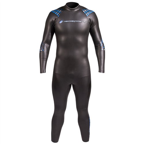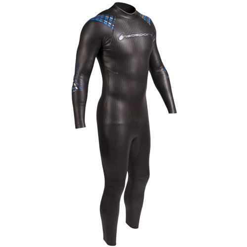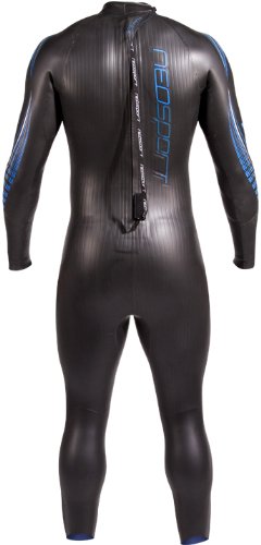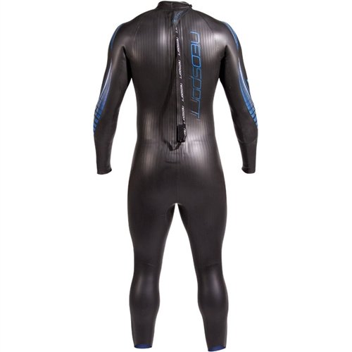 Vertical channels, inspired by a whale's skin, improve hydrodynamics and speed your passage through the water. | The Finishline triathlon wetsuit was inspired by nature's most efficient aquatic animals, which have evolved over millions of years by employing the principles of laminar flow. The Minke whale's skin has parallel lines which help eliminate turbulence and allow it to swim faster and more efficiently. Laminar flow occurs when fluid flows in parallel layers, eliminating disruption in the flow, also known as called turbulence. The Finishline’s parallel ribbed chest, back, and legs significantly reduce flow turbulence while increasing speed and efficiency, improving hydrodynamics and speeding your passage through the water, with less fatigue. Raised placement of the mid-calf leg openings increases kick efficiency and decreases drag, and the wider exit openings diminish heel snag, speeding up suit removal and transition times. An EZ Out zipper remains secure in the water but easy to find on land, further reducing critical transition times. An adjustable collar provides precise fit with no unwanted scooping, while its smooth, narrow contours reduce chafe. Glued and sewn seams increase hydrodynamics and mean the suit will last race after race. Warranty NeoSport products include a limited one-year manufacturer's warranty against defects in materials and workmanship. 0