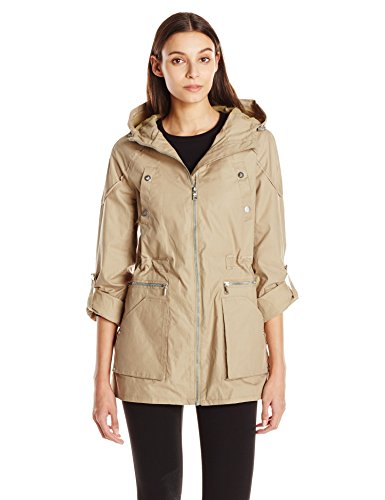 Cotton anorak with side slit. It has grosgrain trim. It is washed cotton.