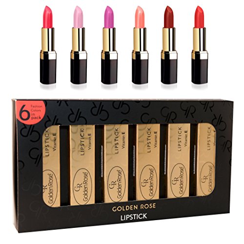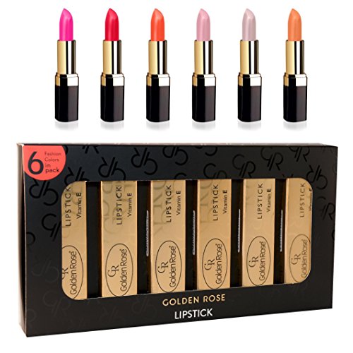 GOLDEN ROSE LIPSTICK: PERFECT COLORS FOR A FANTASTIC GIFT! Are looking for the ideal gift set, provided in a convenient gift box for someone who loves beauty products? Rather than cheaper lipsticks which stick, clump and are dull colors, would you like a premium set of lipsticks in a range of vibrant, vivid colors with a brilliant shiny finish? If so, the Golden Rose Lipstick is the perfect lipstick for you! The Lipsticks produce a unique, eye catching brilliant and shiny finish and are formulated for long lasting color, completely free from parabens. The Set consists of 6 great colors ranging from pure red to nude and each lipstick is easily applied, containing a moisturizing agent together with skin friendly Vitamin E. The Golden Rose Lipsticks are a premium quality European product and offer a professional quality set of lipsticks at a fraction of the price of other products. The Lipsticks are supplied in an attractive gift box and are perfect for beauty lovers, and comes with a number of premium benefits, including: - 6 great shiny colors ranging from pure red to nude. - Colors won't fade easily or wear, unlike cheaper lipsticks. - Free from parabens and harsh chemicals. - Enriched with moisturizing agents and Vitamin E formula to nourish lips. - All the quality and colors of a professional set of lipsticks at a fraction of the cost. - Provided in a premium quality gift box which makes it a perfect gift set. If you're tired of cheap lipsticks that clump and smudge and are looking for the perfect, premium quality set of shiny lipsticks offering a professional finish, a great range of colors, and a fantastic gift box, the Golden Rose Lipsticks are the perfect choice.Feature