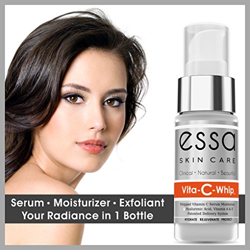 ENHANCED VITAMIN C SERUM + MOISTURIZER + GENTLE VITAMIN A EXFOLIANT (3-IN-1) : Vita-C-Whip™ offers 3 solutions for your skin care routine, all in one bottle! (1) Enhanced Vitamin C Serum for Face and Skin that offers potent antioxidant benefits; (2) An Ultra Hydrating and Moisturizing mix of Hyaluronic Acid, Organic Aloe Extract, Vitamin E that offers skin softening and healing benefits; (3) A Gentle Exfoliant and skin renewal catalyst that helps to reveal your radiant glow.