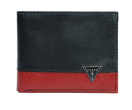 -. Title : New Guess Men's Black Leather Double Billfold Passcase Wallet