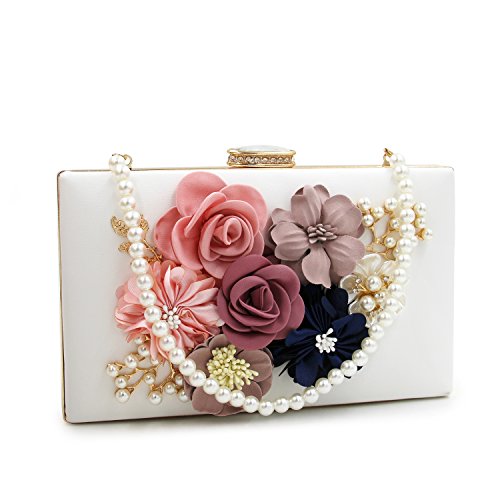 -. Title : Women Handbag Party Evening Bag Floral Beaded Pearl PU Clutch Purse Crystals