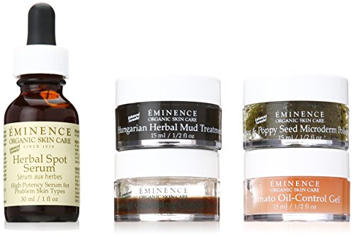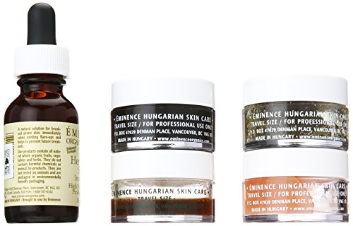 ReleaseDate : 2015-05-15 Studio : Christopher Trading Co. LLC Publisher : Christopher Trading Co. LLC Binding : Health and Beauty Product Description Benefits natural acne fighting kit for oily skin heals and regulates acne conditions naturally contains fruit and vegetable based skin care products calms the skin while returning vibrancy and hydration features mineral cleansing concentrate calms and evens skin's complexion while removing surface dirt and oil pear and poppy seed microderm polisher exfoliates to unclog pores and prevent breakouts Hungarian herbal mud treatment reduces sebum production and improves skin texture tomato oil-free gel improves skin clarity and moisturizes, herbal spot serum heals and regenerates skin eminence organics is a highly effective, entirely organic skin care line. With all naturally organic ingredients these hand-made products are effective and extremely healing. Rich in vitamins, active ingredients and nutrients, eminence products will give you immediate results that you will see and feel. 0