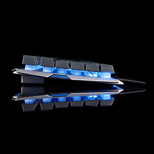 <5> Design: levitated keycaps, be apart from the base about 7mm, easy to clean and waterproof. Fashion metal base, bring you the fantastic gaming experience.