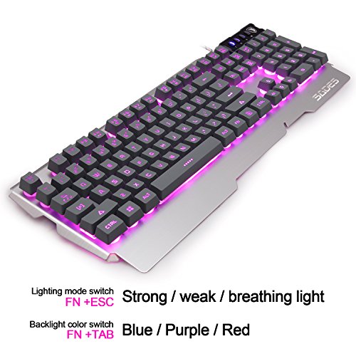 Brilliant Backlit: Adjustable LED Backlight ,3 Colors, Use the FN+TAB to change the color, use the FN+ESC to change the brightness. Uniform light transmission and fantastic Backlit effect. Perfect for all gamers.
