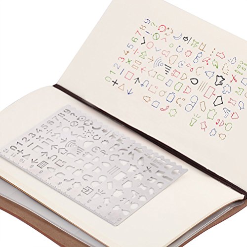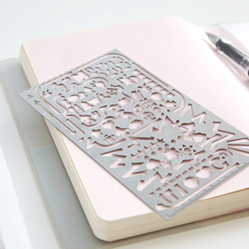Features:Different style stencils ( Web UI / IOS / Alphabet / life element Brass Alphabet and Number) Stainless steel reusable drawing painting stencils