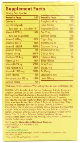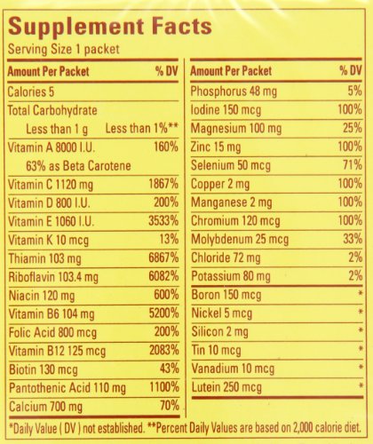 -. Feature : Over 30 Key Vitamins & Minerals. / Complete Daily Nutrition. / Provides Vitamin C, E, and beta-carotene, 3 key antioxidants to fight cellular damage.