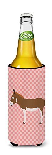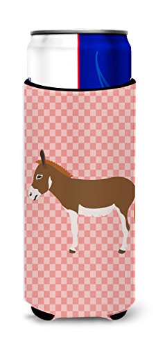 Caroline's Treasures BB7847MUK Miniature Mediterranian Donkey Pink Check Decorative Hugger, Slim Can, Multicolor