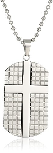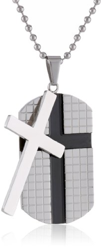 Men's Two-Tone Stainless Steel Movable Cross Textured Dog Tag Pendant Necklace