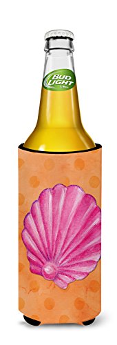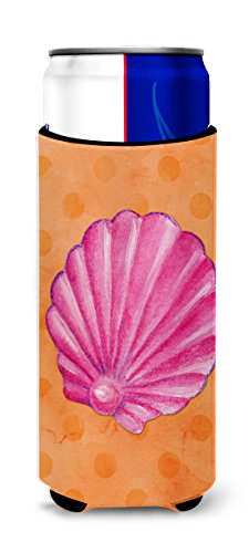 Caroline's Treasures BB8243MUK Pink Sea Shell Orange Polkadot Beverage Insulator Hugger, Slim, Multicolor