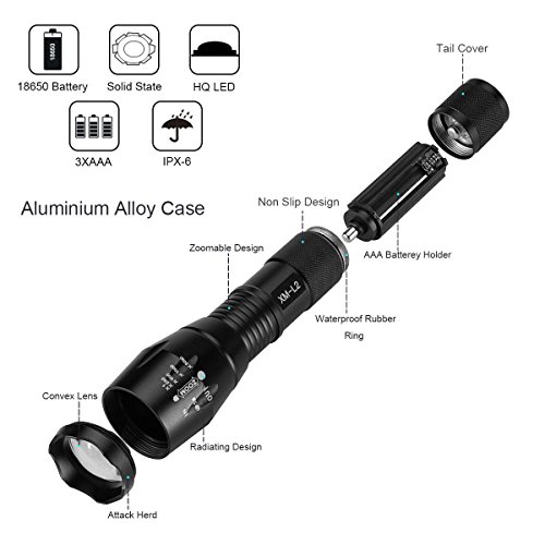 - HIGH POWER BRIGHTNESS: High Lumens LED makes our flashlight much brighter than most ordinary flashlights. Runs on either a 18650 lithium ion battery or 3 AAA batteries.