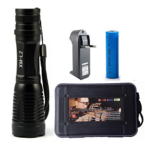 - FULL FLASHLIGHT KIT: 1 Super Bright High Performance Tactical LED Flashlight, 1 18650 Rechargeable Lithium Ion Battery and Sleeve, 1 Lithium Ion Battery Charger, 1 Case, 1 AAA Battery Holder(Suitable As A Present/Gift)