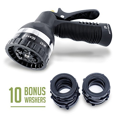 - 9 SPRAY SETTINGS, NUMEROUS USAGE: Alternate water sprinkler options so that you can save time and money buying multiple spray kits. Nine powerful nozzles, all-in-one. Car wash, garden watering, lawn care, patio power washing and so many more usages with Potterlime spray gun nosel. Comes with 10 Bonus washers prevent water leakage!