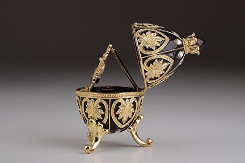 Black & Gold Easter Egg Faberge Styled with Clock Inside